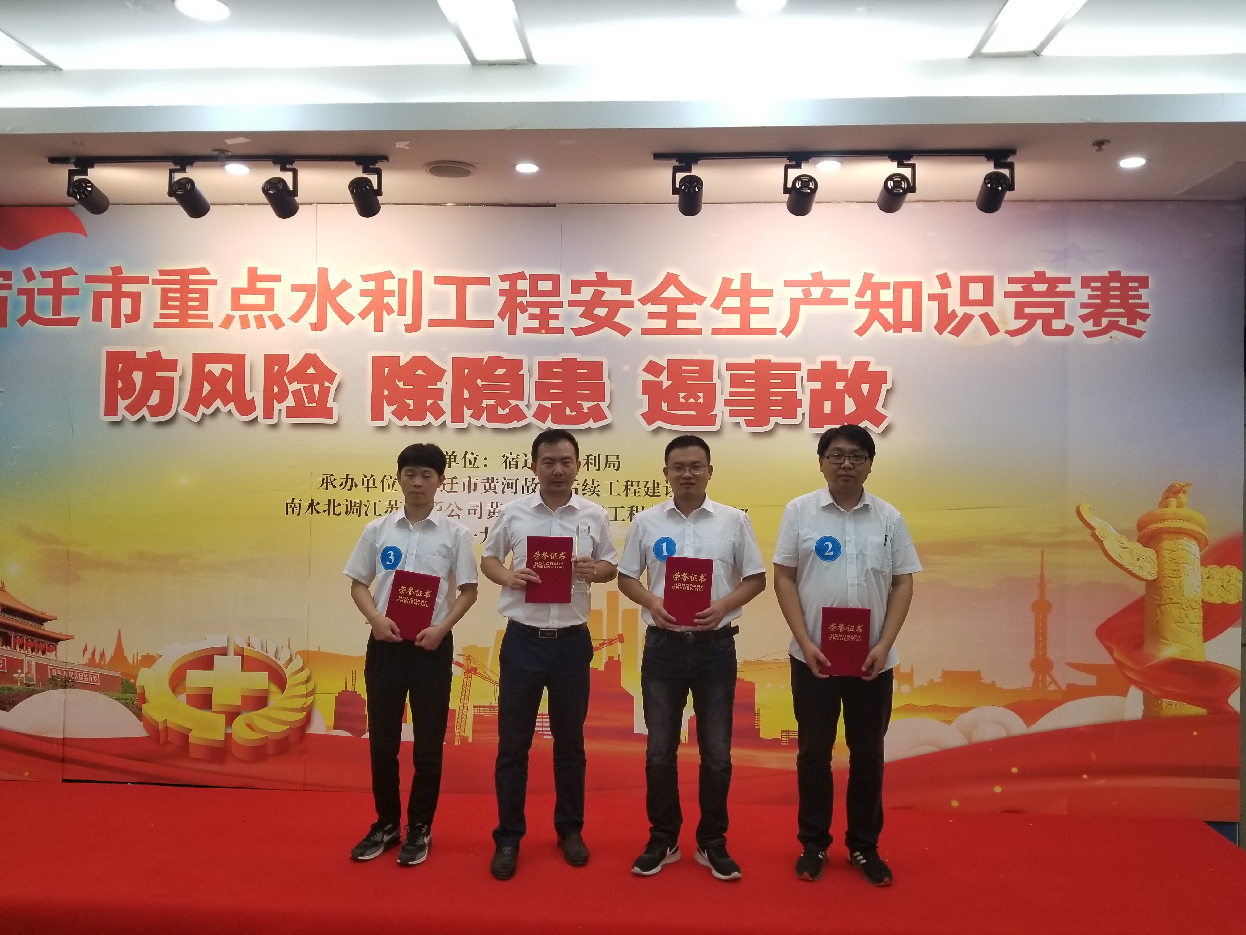 为深入推进安全生产月活动开展,普及安全生产法律知识,提高安全生产意识,筑牢安全生产防线,宿迁市水利局组织开展了“宿迁市重点水利工程安全生产知识竞赛”活动。我公司宿迁市黄河故道后续工程施工3标项目经理部派出代表队经海选、初赛、复赛多轮角逐,代表海豚·体育参加了总决赛,经过激烈角逐,以优异的成绩荣获第二名,展示了海豚·体育职工的良好风采。