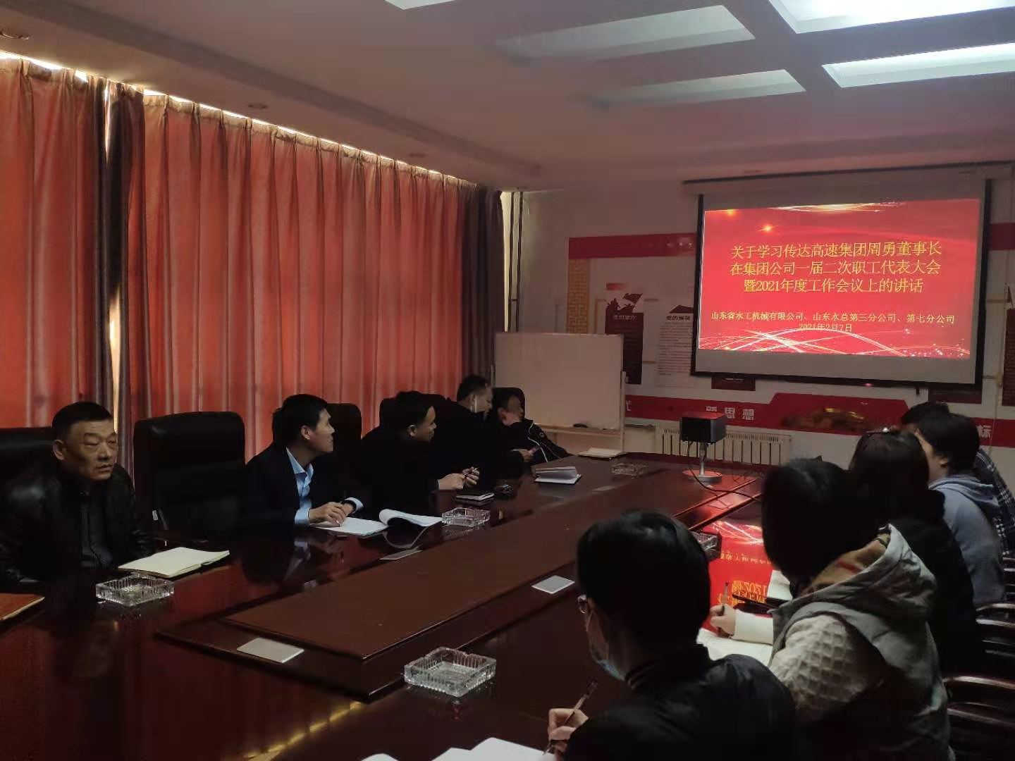 山东省水工机械有限公司、山东水总第三分公司、第七分公司传达学习集团党委书记、董事长周勇同志在2021年度工作会议上的讲话