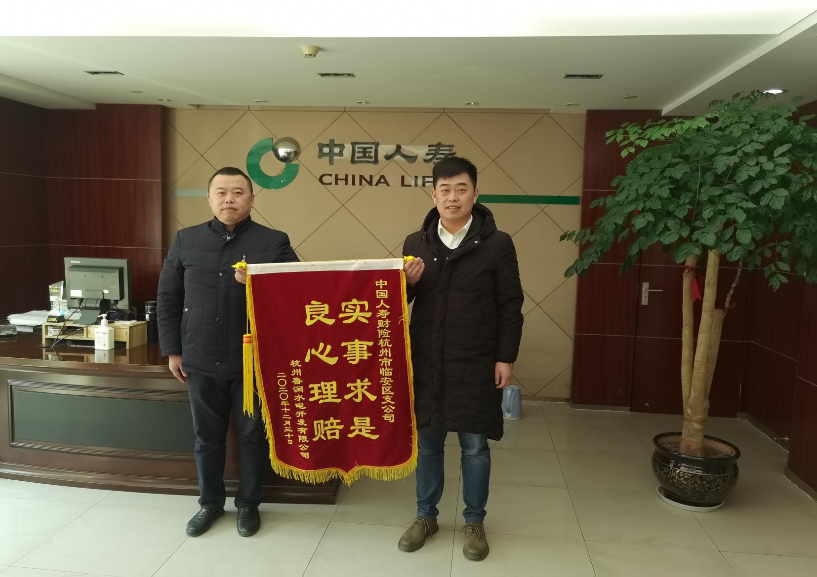 12月30日,中国人寿保险公司已将最终赔付款105万元汇入杭州鲁润水电开发公司账户。双溪口水库工程顺利完成此次工程一切险理赔。风雨无情,保险有爱。双溪口水库工程建设期4年,为了更好让保险为工程保驾护航,更紧密的跟保险公司建立友好关系。杭州鲁润公司将一面印有“实事求是 良心理赔”的锦旗送到中国人寿临安支公司,并对中国人寿理赔工作人员尽职尽责、热情周到的服务提出高度赞扬和诚挚感谢。