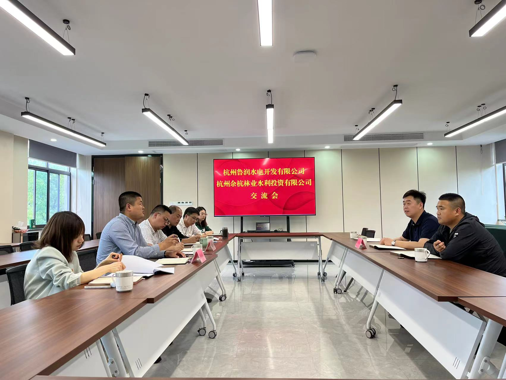 为加强合作交流、积极开拓浙江市场。4月27日,杭州鲁润公司副总经理孟天琦等一行到杭州余杭林业水利投资有限公司调研交流。余杭区林业水利局水利工程建设总站站长王帅,杭州余杭林业水利投资有限公司总经理葛旭锋,余杭区林业水利局机关党总支副书记黄孙婕等相关领导出席交流会。