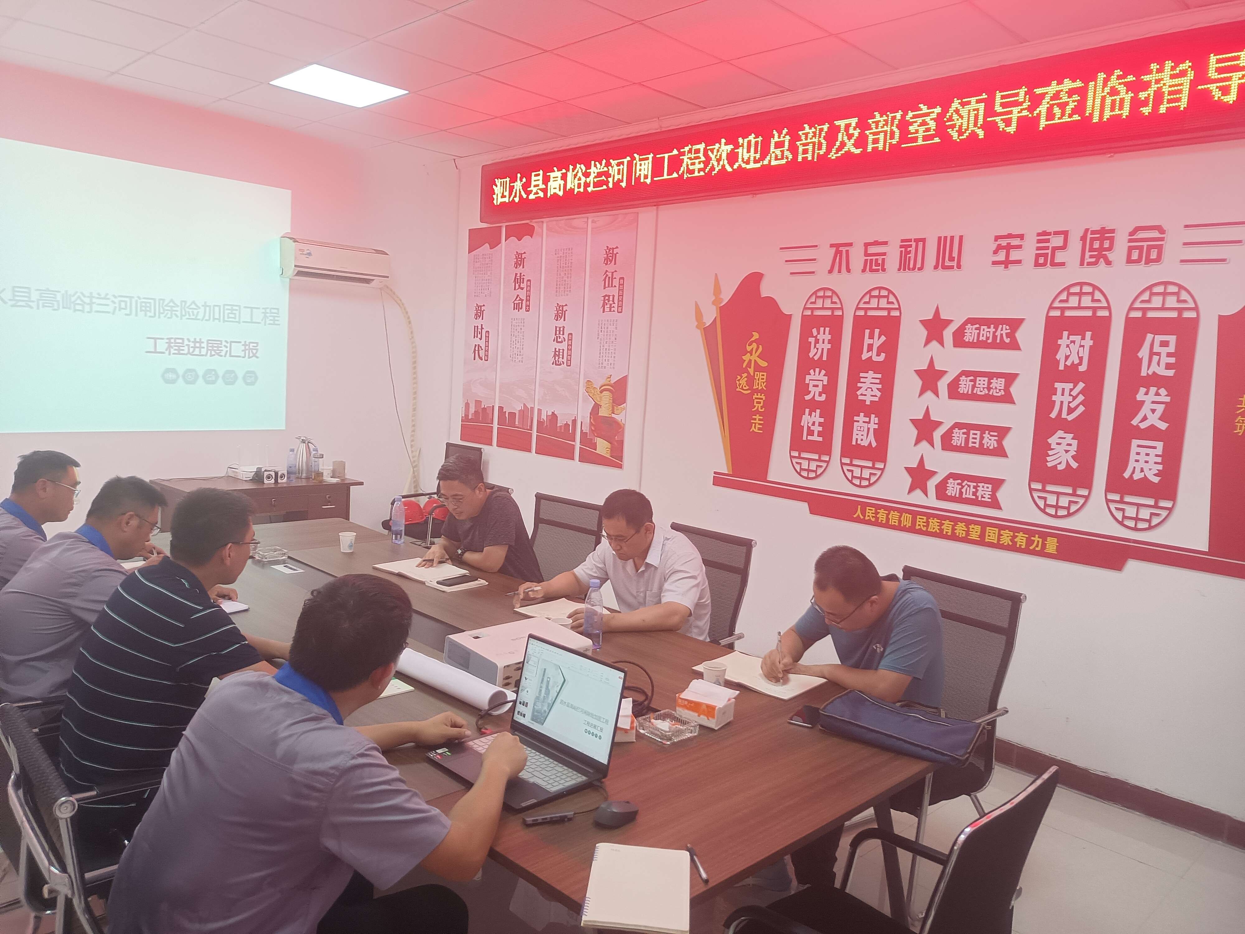 7月13日,公司安全总监郭法文、安全管理部部长向建等一行到第七分公司泗水县高峪拦河闸除险加固工程开展安全检查工作,第七分公司副总经理常征陪同检查。