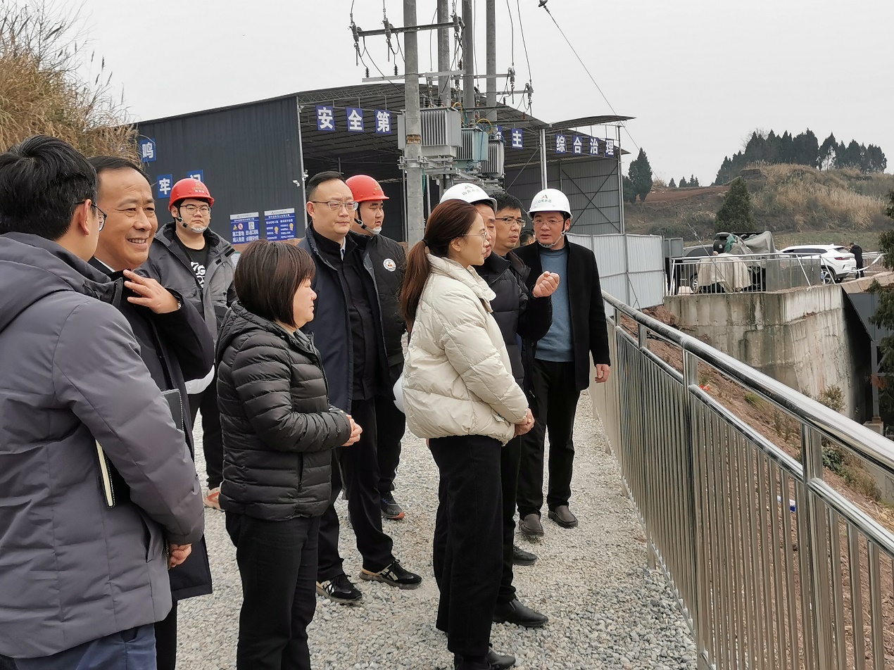 徐炼英一行听取项目总体建设情况汇报,到项目现场查看工程进展情况,对工程进展和质量管控表示认可,对山东水总在内江市水利建设做出的贡献给予高度评价。