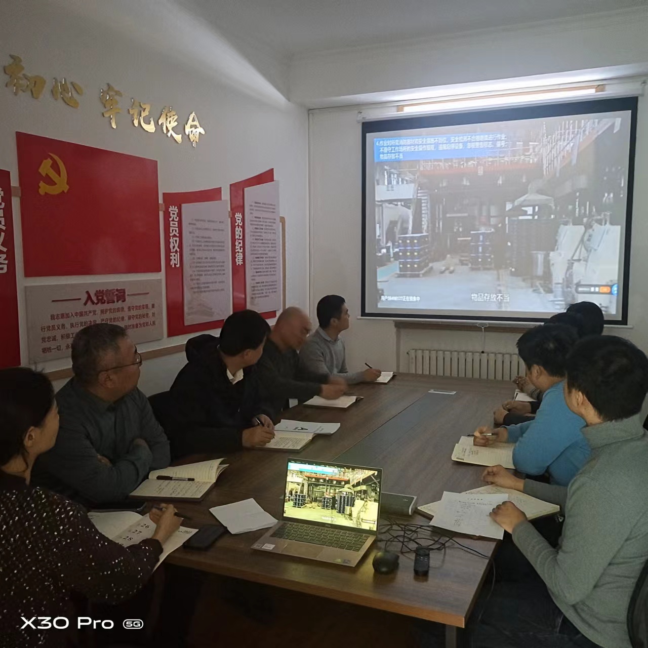 参会人员集体学习总公司2023年一季度安全生产会议和安委办2月份安全工作会议精神,并观看了《严防“三违”》安全警示教育视频。