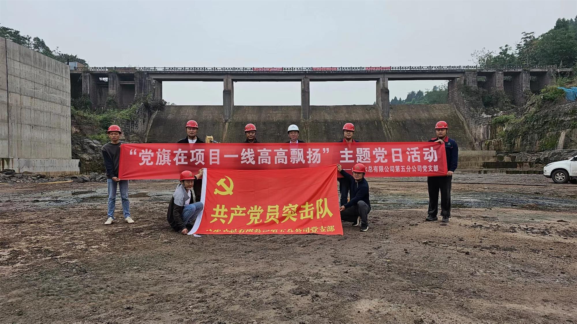 近日,第五分公司党支部在资中县两河口水库项目组织开展“党旗在项目一线高高飘扬”主题党日活动。