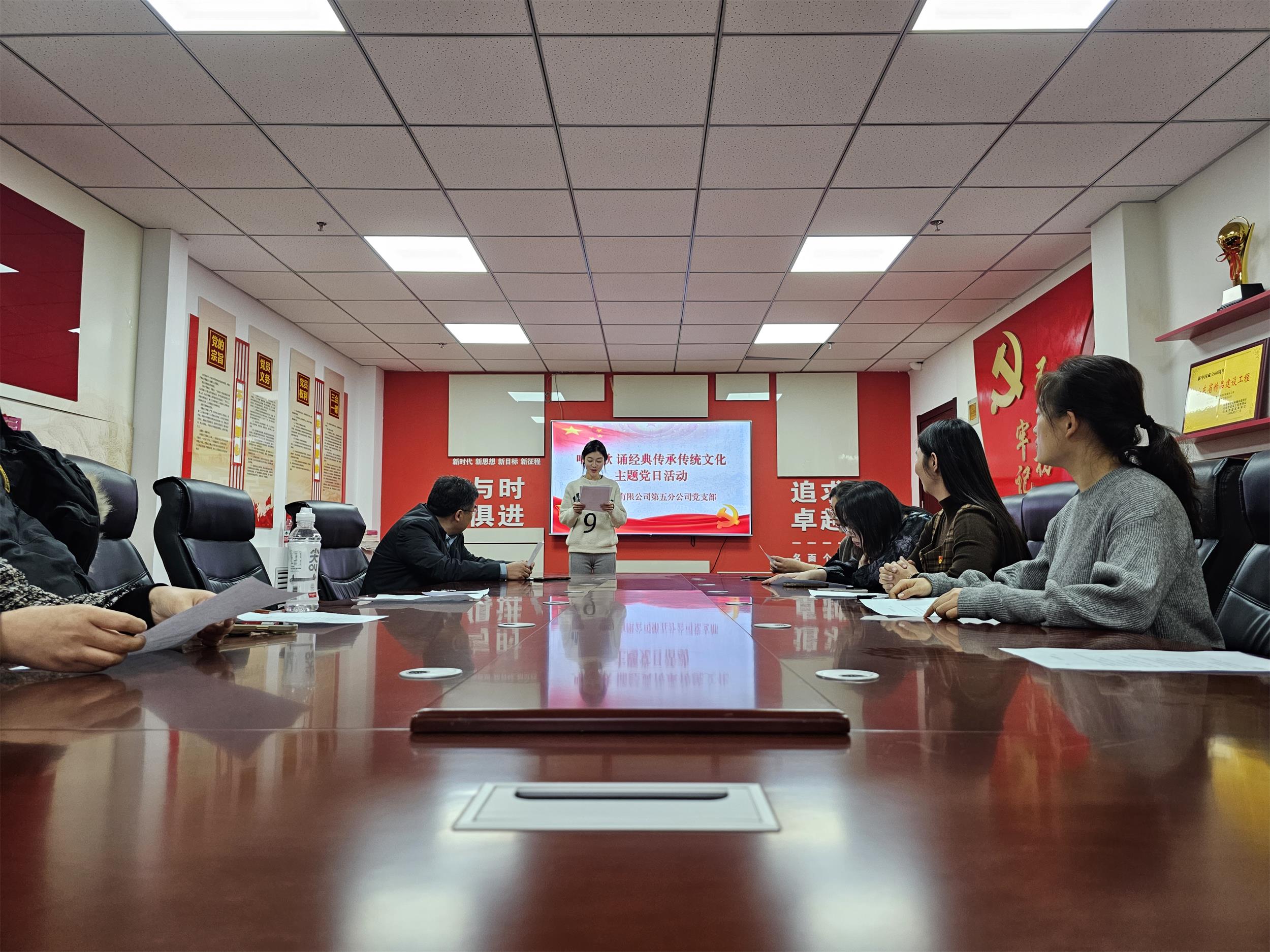 近日,第五分公司党支部组织开展了“唱红歌、诵经典,传承传统文化”主题党日活动。