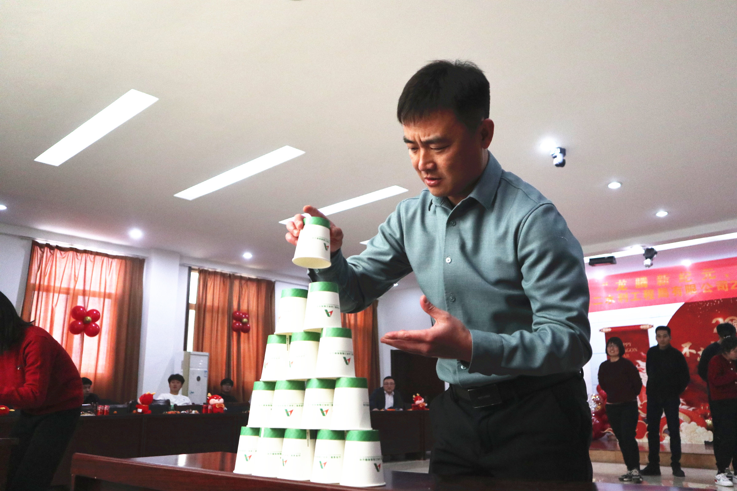 此次运动会集趣味性、协作性、竞争性于一体,包括同舟共济、叠纸杯接力、勺子大作战、双龙戏珠、趣味保龄球、蒙眼击鼓、袋鼠跳跳、够级、掼蛋等多个项目。比赛现场既紧张激烈,又妙趣横生,每项运动不仅考验参赛选手的体力与动作协调性,更是参赛队伍团结协作和智慧的完美比拼。赛场上,加油声、呐喊声此起彼伏,欢声笑语不绝于耳。