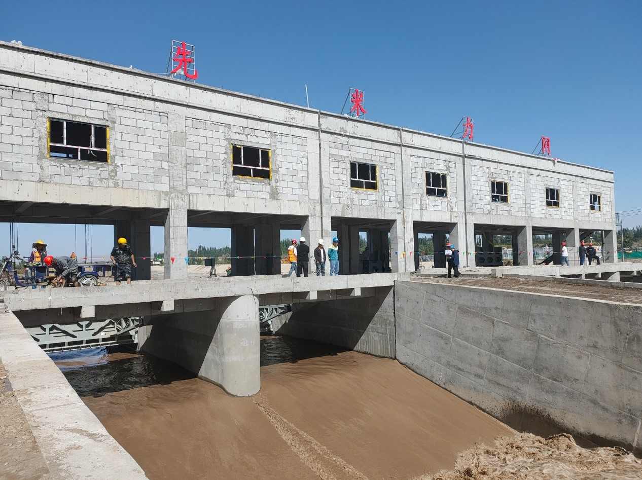 水工机械公司本月在新疆英吉沙县先米力除险加固工程中也取得了重要进展。完成了闸门埋件等金属结构的安装工作,安装人员日夜奋战,使得先米力闸的金属结构部分顺利通过三方无损检测、透光实验以及全程启闭实验。在业主、监理等项目干系方的共同见证下,先米力闸顺利通水。同时,金属结构的电气控制与自动化设备本月已到达施工现场,下一步,电气控制与自动化专业人员将进场进行安装。