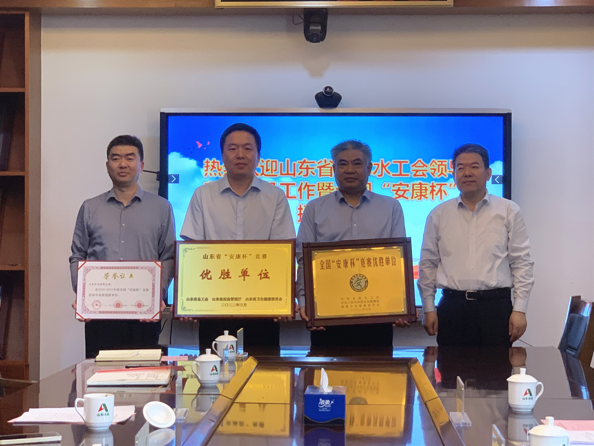 5月12日,公司举行了全国、山东省“安康杯”竞赛优胜单位授牌仪式。省农林水工会主席张志刚、主任科员吴开明,公司党委书记、董事长刘深远,党委副书记、董事、总经理靳文硕,党委委员、副总经理付海华,党委组织部、安全管理部相关人员参加仪式活动。