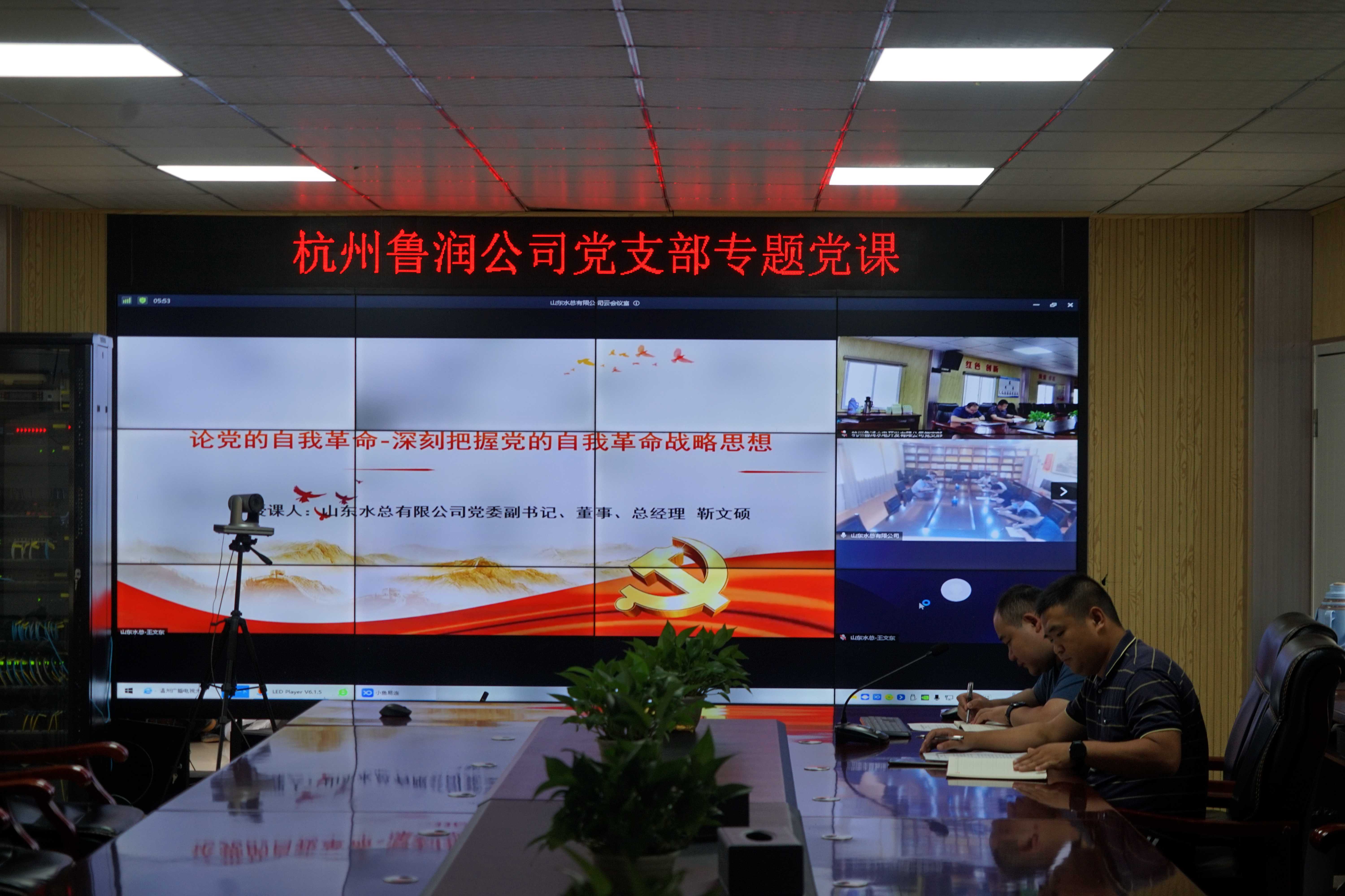 6月19日,公司党委副书记、董事、总经理靳文硕以“论党的自我革命—深刻把握党的自我革命战略思想”为主题,为建筑劳务公司党支部、杭州鲁润公司党支部讲授主题教育专题党课。
